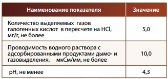 - внутренней оболочки и разделительного слоя: не более 50 мг/г
