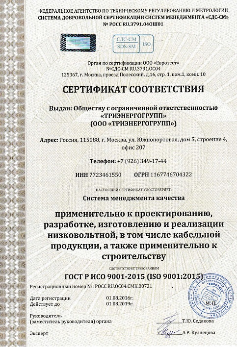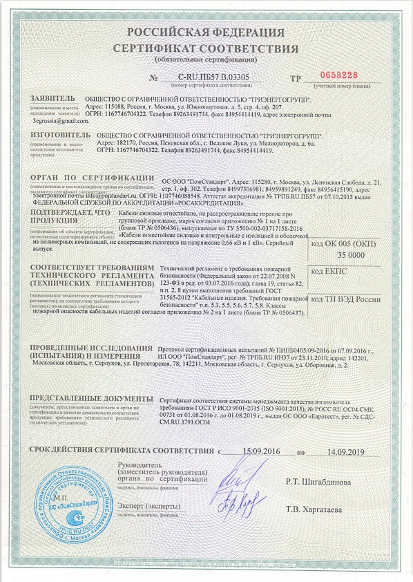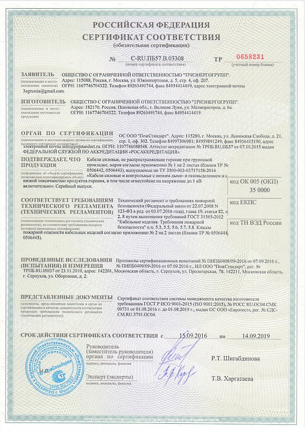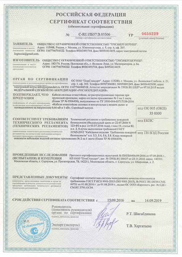 соответствуют требованиям ТУ 3500-002-03717158-2016, ГОСТ 31996-2012