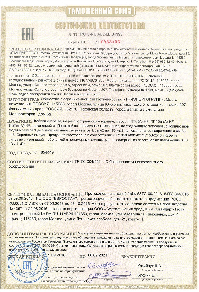 Наружная оболочка – из полимерной композиции, не содержащей галогенов. Количество жил – от 1 до 5. Номинальное сечение – от 1,5 мм2 до 185 мм2. Номинальное переменное напряжение – 0,66 кВ и 1 кВ.